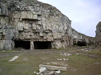 Winspit Quarry in Dorset was used for the planet Skaro,[5] also used were the quarry's small stone cottage and two larger buildings, (all of which were just empty derelict shells). The BBC added to the flooring of the two larger buildings a large number of silver coloured cylinders and pipes, sticking out of the rubble, which transformed these two derelict shells into the external ruins of the long abandoned Dalek city and the disused Kaled bunkers.