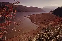 Detroit Lake is situated over a historical road bed of the former Oregon Pacific Railroad. This route was built by Colonel T. Egenton Hogg as a proposed transcontinental railroad. Because of a lack of funding, the line terminated in Idanha, southeast of the lake. Idanha had rail service until the 1950s, when the track was removed for installation of the Detroit and Big Cliff reservoirs.[3] Detroit Lake was created in 1953 after the completion of the dam.[1] Part of the Willamette Valley Projects, the lake was intended primarily for flood control and power generation but has become one of the major recreation resources in western Oregon.