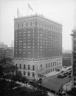 The Hotel Statler was designed for Statler Hotels by George B. Post and Louis Rorimer in the Georgian architectural style, with English Renaissance Revival roots evident.[3] It consisted of 18 floors: sixteen above grade and two basement floors. Construction began on the original 800-room portion in 1914 and was completed in 1915.[4]