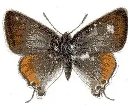 Deudorix livia, the pomegranate playboy, is a butterfly in the family Lycaenidae. It is found in Senegal, the Gambia, Burkina Faso, Cameroon, Chad, Sudan, Uganda, Kenya, Tanzania, Somalia, Djibouti, Yemen, Saudi Arabia, United Arab Emirates, Oman, Algeria,[2][3] Egypt and the eastern Mediterranean, including Greece.[4] The habitat consists of savanna, including arid savanna.