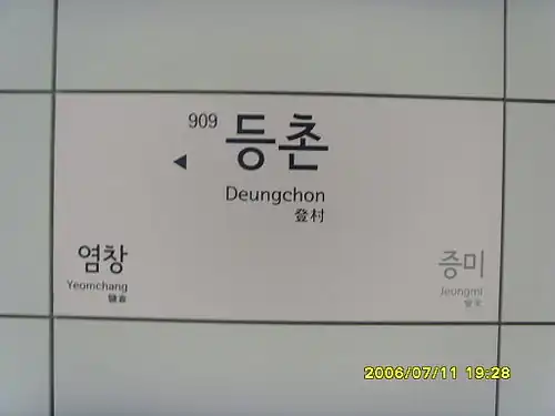 Deungchon (Korean: 등촌역) is a railway station on Line 9 of the Seoul Subway.