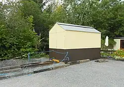 There is a small engine shed at Devil's Bridge. The shed is considerably too small to accommodate any of the line's principal locomotives. It typically houses one of the locomotives from the railway's museum fleet, either Wren 3114 or Quarry Hunslet Margaret. The locomotive is steamed on some high season operating days to provide footplate rides along a short demonstration line as an additional station attraction.[1]