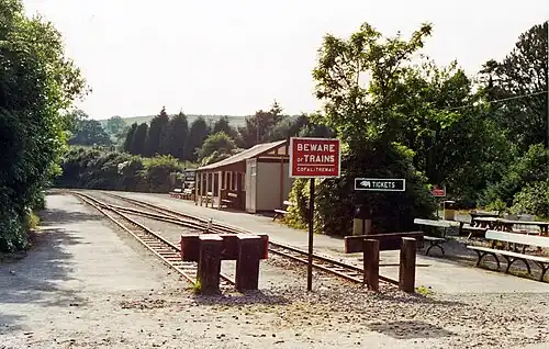 Devil's Bridge railway station is a railway station serving Devil's Bridge in Ceredigion in Mid-Wales. It is the eastern terminus of the preserved Vale of Rheidol Railway.