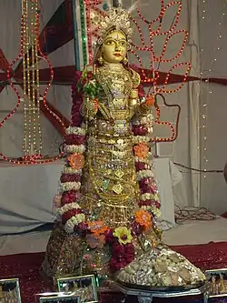 On this day Teej in Jodhpur, one image of Ganaur without Isar, known as Dhinga Gavar,[2] is established at 11 important streets (mohalla) within the old fort wall of Jodhpur. It is worshipped by all women: married, unmarried, and widows.[3]
