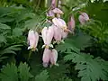 Dicentra (Greek dís "twice", kéntron "spur"),[3] known collectively as the bleeding-hearts, is a genus containing eight species of herbaceous flowering perennial plants with unique, "heart"-shaped flowers and finely divided foliage. The species are, primarily, native to North America, although several are found in temperate East Asia.