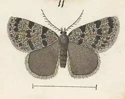 This species was first described by Edward Meyrick in 1911 using a specimen collected by George Hudson at Lyttelton in November.[3] George Hudson discussed and illustrated this species in his 1928 book The butterflies and moths of New Zealand.[4] The male holotype is held at the Natural History Museum, London.[5]