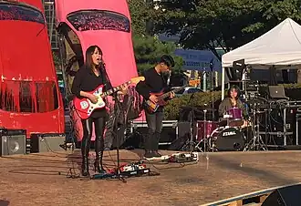 Diealright (Korean: 다이얼라잇), often stylized as DIEALRIGHT, is a post punk band from Seoul, Korea. Consisting of lead vocalist and guitarist Chae Song Hwa, bass guitarist Kim Seung Il, and drummer Baek Soojung, the band debuted in 2014.[1] Since then, they have released two singles, and EP and an album. The album presentation showcase was held in Club Freebird in Hongdae.[2] The band played their first European tour dates in the summer of 2017.[3]