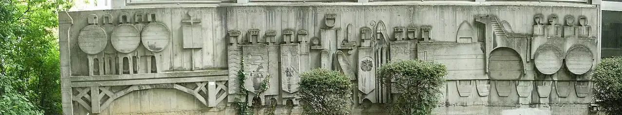 During the diet the emperor negotiated with Henry the Lion protected by archbishop Conrad[2] about an anti-French alliance with England, which however remained unsuccessful. Another political event of far greater symbolic importance was the dispute over the rank of Abbot Konrad of Fulda. According to the chronicler Arnold of Lübeck, during a meeting of the princes he demanded it as his old right to sit to the left of the emperor at the time of court day. Only the Archbishop of Cologne had long contested the exercise of this right. The emperor then asked the archbishop of Cologne, Philipp of Heinsberg, who felt duped by the emperor's Lower Rhine territorial policy, to grant the wish of the abbot of Fulda. The archbishop had to regard this as an attack on his position, which found expression in the form of the seating arrangement. Philip then asked to leave the festivities and go to his inn, which was tantamount to refusing to consent to his ritual reduction of rank. This was followed by a scandal when numerous vassals of the Archbishop, including the Count Palatine near the Rhine, a brother of the Emperor, also requested their withdrawal from the festivities.