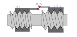 A differential screw is a mechanism used for making small, precise adjustments to the spacing between two objects (such as in focusing a microscope,[2] moving the anvils of a micrometer,[3][4] or positioning optics[5]). A differential screw uses a spindle with two screw threads of differing leads (in case of a single lead equal to the thread pitch), and possibly opposite handedness, on which two nuts move. As the spindle rotates, the space between the nuts changes based on the difference between the threads. These mechanisms allow extremely small adjustments using commonly available screws. A differential screw mechanism using two nuts incurs higher friction and therefore requires more torque to turn than a simple, single lead screw with an equivalent pitch.[6][7][8]