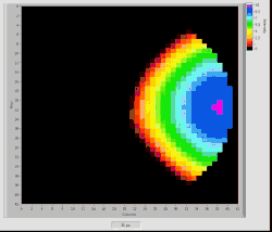 - Figure 4: Diffuse reflectance vs. radius from incident pencil beam for an anisotropic (blue) and isotropic (red) medium.