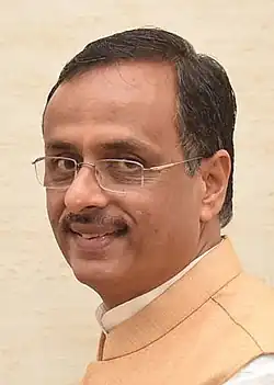 Sharma's political talent was first noticed by former Prime Minister Atal Bihari Vajpayee. Like many politicians in the Bharatiya Janata Party, Sharma began his political career with the Akhil Bharatiya Vidyarthi Parishad, the student wing of the Rashtriya Swayamsevak Sangh. He was later named the state President of the BJP's Bharatiya Janata Yuva Morcha (Youth Wing).[1] Sharma was subsequently elected as Mayor of Lucknow in 2006. He stood for re-election in 2012 and defeated his nearest rival, Neeraj Bora of the Indian National Congress by over 171,000 votes.[2] On 16 August 2014 he became the National Vice-President of Bharatiya Janata Party, following his contribution to the party's success in the 2014 Lok Sabha elections. On 19 March 2017, he was appointed one of two Deputy Chief Ministers of Uttar Pradesh. He is not an elected member of the Uttar Pradesh Legislative Assembly. He was elected for Legislative Council (Upper House) on 9 September 2017.