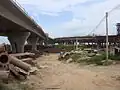 Prior to 2017, there were two, makeshift wooden bridges connecting the north bank of the Nandu with the north of "Laocheng", the old part of Dingcheng. The new Dinghai Bridge replaces them and they are now closed. At the north end of the bridge, a road will eventually be built that will lead all the way north to Haikou.