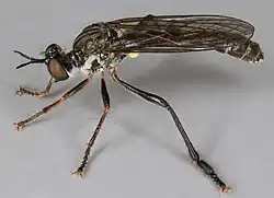 - Holotype as Asilus hyalipennis by Fabricius, 1794. Type Locality: Denmark. Fabricius’ collection is in the University of Copenhagen Zoological Museum, Copenhagen, Denmark.