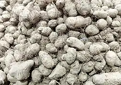 Starch grains identified to be from the lesser yam have been recovered from archaeological sites of the Lapita culture in Viti Levu, Fiji, dated to around 3,050 to 2,500 cal BP.[11] D. esculenta is believed to have been introduced by the Lapita culture into New Guinea, along with agricultural innovations like wet cultivation.[12][13] Traces of D. esculenta (along with D. alata, D. bulbifera, D. nummularia and D. pentaphylla) yams have also been identified from the Mé Auré Cave site in Moindou, New Caledonia, dated to around 2,700 to 1,800 BP.[14] Remains of D. esculenta have also been recovered from archaeological sites in Guam, dated to around 1031 CE.[15]