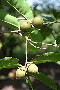 Diospyros mespiliformis, the jackalberry (also known as African ebony and by its Afrikaans name jakkalsbessie), is a large dioecious evergreen[2] tree found mostly in the savannas of Africa. Jackals are fond of the fruit, hence the common names. It is a member of the family Ebenaceae, and is related to the true ebony (D. ebenum) and edible persimmon (D. kaki).