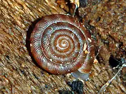 Discus rotundatus, common name rotund disc, is a species of small, air-breathing, land snail, a terrestrial pulmonate gastropod mollusk in the family Discidae, the disk snails.
