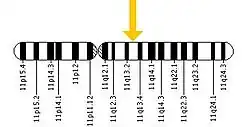 DSMA1 is caused by a genetic mutation in the IGHMBP2 gene (located on chromosome 11, locus 11q13.3), which codes the immunoglobulin helicase μ-binding protein 2. The role of the IGHMBP2 protein is not fully understood, but it is known to affect mRNA processing.[1] The cellular mechanisms of the mutation, as well as the protein mechanisms disrupted by the mutation, are unknown.[3] IGHMBP2 mutations are usually random mutations which are normally not passed down through generations.[1]
