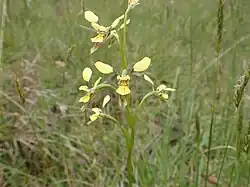 Diuris abbreviata, commonly known as the lemon doubletail,[2] is a species of orchid that is endemic to eastern Australia. It has two or three leaves and a flowering stem with up to nine yellow flowers with darker markings.