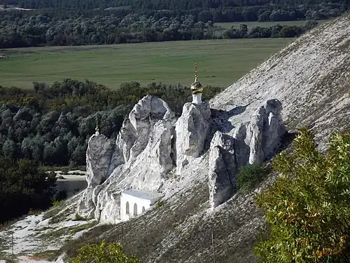 Nature reserve museum Divnogorye (Russian: Музей-заповедник «Дивногорье», Muzej-zapovednik Divnogor'e) is a plateau and open-air museum in Liskinsky District, Voronezh Oblast, Russia. It is located 10 km to the west of Liski, the administrative center of the Liskinsky District. It is situated on the right bank of the Don River, 80 km to the south of Voronezh, not far from khutor Divnogorye. The museum was established in 1988 and received the official status of a nature reserve museum in 1991. Divnogorye remains one of the most popular and recognizable tourist attractions of Voronezh Oblast. More than 60,000 visitors are attracted every season (from May to October), mostly from Voronezh and the wider Voronezh Oblast.[1]
