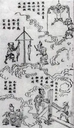 - Santu (三涂; 三塗; Sān Tú; San1-t'u2), the "Three Tortures": Fire Torture (火涂; 火塗; Huǒ Tú; Huo3-t'u2), Blade Torture (刀涂; 刀塗; Dāo Tú; Tao1-t'u2), Blood Torture (血涂; 血塗; Xuě Tú; Hsüeh3-t'u2; 'spilling of blood').