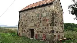 A road from the south entered the town through a gate. Its continuation and streets within the town were about 2,5 metre-wide, paved with large stone slabs, and edged by a low stone wall. Houses in Dmanisi were built of irregular lines of basal stones, with brick fireplaces and niches, inner walls plastered and, in case of richer houses, covered with green ceramic tiles.[4] In the ruined town's centre, just below the citadel, stands Dmanisi's cathedral church of Sioni, an early medieval basilica with a three-bay nave and apse, and a richly adorned narthex added in the early 13th century. North of it, there is a small single-nave church of St. Marina, rebuilt in 1702, as revealed by a Georgian inscription above its southern portal. Farther to the northeast, there are ruins of two other small churches, which contain stones with Armenian inscriptions.[4]