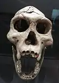| Dmanisi Skull 5 D4500 (mandible D2600) | 546 cc[3] | 2005[3] (mandible in 2000)[3] | 2013[32] (mandible in 2002)[33] | Skull of an adult individual. Skull 5 is the first completely preserved Early Pleistocene adult hominid skull found. Interpreted as male on account of its massive and prominent cranial features.[8][22] |
