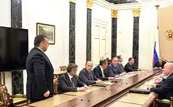 Dmitry Viktorovich Kochnev (Russian: Дми́трий Ви́кторович Ко́чнев; born 1 March 1964[3]) is a Russian army general. From June 2015[4] to May 2016, he was the head of the Russian Presidential Security Service and as acting head from June to December 2015.[5] Since 26 May 2016, he has been the Director of the Federal Protective Service.[6][7] He was promoted to the rank of army general in early June 2021.[8]