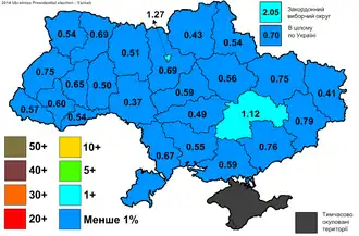 (in Russian) Results election of Ukrainian president, Телеграф (29 May 2014) - ^ a b c "Data on vote counting at precincts within single-mandate districts: Extraordinary parliamentary election on 26.10.2014". Central Election Commission of Ukraine. Archived from the original on 29 October 2014.