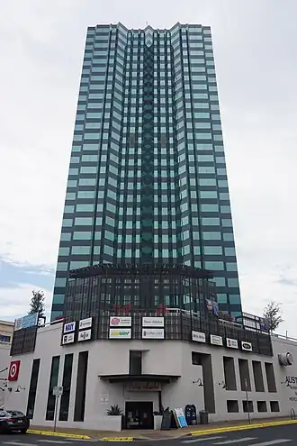 Dobie Center, named after J. Frank Dobie, is a formerly privately owned 27-story residence hall located on the University of Texas at Austin campus. On October 12, 2021, the University of Texas announced it was purchasing the center to provide additional school-owned housing near campus for its students.[1] In addition to being a residence for students, Dobie contains a two-story mall, restaurants, and specialty stores.[2]