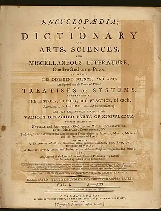 - ^ Arner, Robert D. (1991). Dobson's Encyclopaedia: The Publisher, Text, and Publication of America's First Britannica, 1789–1803. Philadelphia: University of Pennsylvania Press. Page 180.