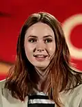 Alex Kingston returned as River Song. Although Kingston did not expect to return before the fifth series, Moffat always intended for River to return to the series.[10] James Corden also reprised his role as Craig Owens from "The Lodger" in "Closing Time",[11] and Simon Callow briefly reprised his role as Charles Dickens from the first series episode "The Unquiet Dead", as did Ian McNeice who briefly reprised his role as Winston Churchill from the fifth series episode "Victory of the Daleks".[12] A young version of Amy was played by Gillan's eleven-year-old cousin, Caitlin Blackwood, in the episodes "Let's Kill Hitler" and "The God Complex". Gillan and Blackwood first met on the set of the fifth series, but, although Blackwood had to audition, Gillan recommended her for the role.[13][14]