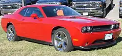 The Dodge Challenger is a full-size muscle car that was introduced in early 2008 originally as a rival to the evolved fifth-generation Ford Mustang and the fifth-generation Chevrolet Camaro.[3]