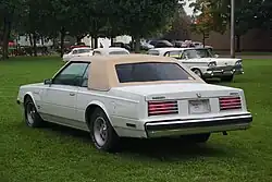 The base models all received a basic metal roof with a chrome beauty strip extending from the bottom of the opera windows and across the roof. A power sunroof, or a glass T-top roof, were both offered as options for a sportier look; while a vinyl landau roof, or a "cabriolet roof", which was basically a mock convertible top with a blocked out quarter window, were both offered for a more luxurious look. The T-tops and landau were offered every year except for 1983, and the cabriolet top was offered every year. A power sunroof was offered for 1980 and 1981.