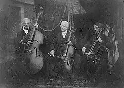 Dragonetti towards the end of his life, c. 1843, with cellists Robert Lindley and perhaps Charles Lucas