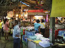 This market is a community of locals that is a long walk into the inner. The two sides of the way are old wooden shophouses lined along the riverbank. It is a very busy market especially on weekends. It has many products for sale to visitors many are local produce or fruit obtained from planting in the area. However, the most famous thing at the market is the variety of food. such as tom yum noodles soup, fried fishcake or fish balls, beef and pork barbecue, pork satay, nam prik, stewed Java barb in salty soup, Chinese sausage, Thai sweets, coconut milk ice cream and notable Chinese stewed duck, which has two shops that are both old and famous.