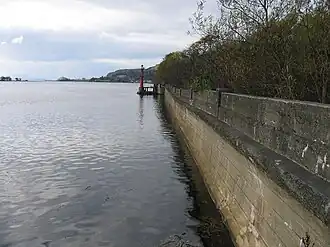 The original Erskine Ferry ran from Donald's Quay to the Ferry House at Erskine on a route that made use of the tides to assist the ferry prior to a chain being laid and finally powered vessels being introduced at a different site further up river.[22] By 1863 and probably somewhat earlier, Donald's Quay was no longer in use as a terminus for the Erskine Ferry.[23] The location of the quay close to the canal would have allowed passengers carried on canal boats to easily access the ferry.