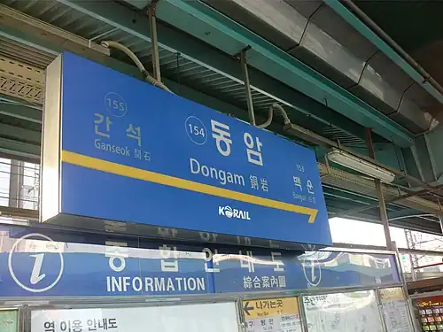 - ^ 동암역 (in Korean). KRIC. Retrieved 2016-01-14.