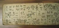 The Dongba, Tomba or Tompa or Mo-so symbols are a system of pictographic glyphs used by the ²dto¹mba (Bon priests) of the Naxi people in southern China. In the Naxi language it is called ²ss ³dgyu 'wood records' or ²lv ³dgyu 'stone records'.[1] The first artifacts with this script on them originate from approximately 30 CE.[2]