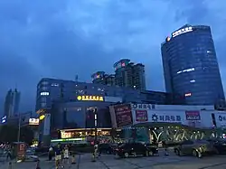 Major retail and office centers within Dongcheng Subdistrict include Dongcheng Wanda Square (东城万达广场), Dongcheng Shibo Square (东城世博广场), Xinghe City (星河城), Junhao Business Center (君豪商业中心), and Yujing New Time Square (愉景新时代广场).