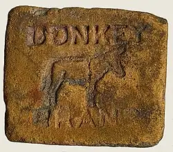 The 'donkey brand' was originally the trade mark of a Manchester company called Edward Read & Son, who were one of several makers of the stones. Other companies used other animal designs[1] or simple lettering, but the name 'donkey stone' stuck.
