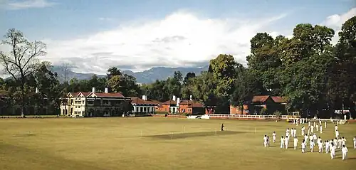 In 1947, there were around 300 boys studying at Doon, out of which 50-60 were Muslims, 15-20 Sikhs, 15-20 Parsees, 6-7 Christians, and the remaining two-thirds Hindu.[32] The first cohort of students left school in 1938, and during the Second World War, about 65 Doon students served in the Army, Navy or Air Force.[33] In 1948, Foot returned to England for "family reasons", and John Martyn became the second headmaster.[34] After the Indian Independence, Martyn's friends suggested it would be a mistake to stay on in India, but he later wrote: "They could not have been more wrong. I have found my life much pleasanter than before...although no one had previously ever done or said anything to make me feel at all unwelcome, from now on it was often made quite explicit that I was very welcome."[34] While Foot and Martyn were determined to model Doon on Eton and Harrow, they both agreed that Doon should cater primarily for Indian boys—and not the sons of British expatriates—in order to create a uniquely Indian public school rather than a transplanted British institution. Foot did not want Doon to be considered elitist. In a paper surveying the new school, presented to the Royal Society of Arts, London in 1947, Foot wrote: "In language we have never intended to base our instruction on the Classics in the way that Latin is still the centre pin of the English Public School. The great majority of boys take Urdu or Hindi."[35] Martyn retired as headmaster in 1966 and became a managing trustee of Indian Cheshire Homes.[36]