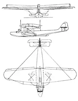 A further civil Do 18 was the Do 18F, a modified aircraft with longer wingspan and higher weights built for extended-range flights. The sole Do 18F, D-ANHR, first flew on 11 June 1937.[6] It was later modified with 656 kW (880 hp) BMW 132N radial engines to test a possible upgrade for the Luftwaffe's aircraft, flying in this form on 21 November 1939 as the Do 18L. It suffered cooling problems, however, and further development of the radial powered Do 18 was abandoned.[7]