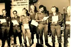 In May 1963, he enlisted in the IDF, volunteering for service in the Paratroopers Brigade,[2] and was assigned to the 890th Battalion. He completed training as a combat soldier, the Infantry Commanders Course, and the Infantry Officers Course, which he completed with distinction.[3] He served for about a year as an instructor at Officer Training School (Bahad 1) before returning to the Paratroopers Brigade as a platoon commander in the Sergeant Company of the 890th Battalion. During the Six-Day War, he fought as a company commander in the battalion.[4] After the war, his company conducted the first paratroopers' swearing-in ceremony at the Western Wall.[5] During the War of Attrition, he participated in Operation Rooster 53,[6] and, as deputy battalion commander of the Nahal Airborne (50th Battalion), led "Operation Shefat 37" in 1970, where his unit fired mortars at a Syrian military training base approximately 70 km northeast of Damascus, and he commanded "Operation Rooster 59," where paratroopers attacked an Egyptian military logistics base near the Bir Arida airfield.