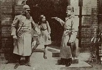 In June 1914 Dorothy's father was appointed director in charge of B&C's enclosed studio at Walthamstow in east London.[19] After war was declared in August 1914 B&C focussed on patriotic themes in their films. Ernest directed and played a lead role in An Englishman's Home, a film about a foreign invasion based on the play by Guy du Maurier, with Dorothy as Ernest's on-screen daughter.[20][21]
