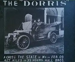 In 1909, Guy Herring Hall Sr. and his brother, George Hall, drove a Dorris across Missouri, setting a record time of 33 hours.