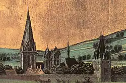 The Sigiburg was a hillfort in the south of present-day Dortmund, overlooking the River Ruhr near its confluence with the River Lenne. The ruins of the later Hohensyburg castle now stand on the site of the Sigiburg. The hillfort is presumably of Saxon origin, but there is no archeological or documentary proof of this. During the Saxon Wars, it was taken by the Franks under Charlemagne in 772, retaken by the Saxons (possibly under Widukind) in 774, and taken again and refortified by Charlemagne in 775. Archaeological evidence suggests the Sigiburg site was also occupied in the Neolithic era.[18][19]