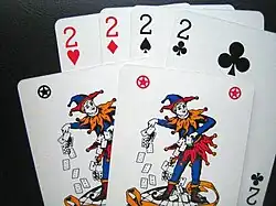 ![]() Two "bombs" in the game; four twos, and a pair of jokers | |
