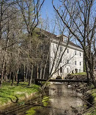 The Doub's Mill Historic District is a national historic district that encompasses a portion of the small community of Beaver Creek, Maryland, dating to the late 18th century and early 19th century. The dominating structure is Doub's Mill, a grain mill built between 1811 and 1821 by John Funk. Using local limestone, the neighborhood displays an unusual consistency of style and construction.[2] In addition to Doub's Mill, there are five other homes and numerous outbuildings, all originally part of the mill complex. The stone structures are built in the German tradition, and one has a date stone inscribed 1782, at which time the area belonged to Henry and Christian Newcomer, Mennonites of Swiss-German origin.[3]