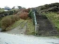 Lower remnant of the funicular railway which ran alongside the stairs to near the Camera Obscura (upper left)