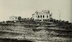 Lapraik was also a founding director of the Hongkong, Canton & Macao Steamboat Company which was incorporated as company number 0000002 in the Hong Kong Companies Registry in 1865 when the registry was also first formed.[10] 1865 was also the year that Lapraik began his involvement as a founding Director in the Hongkong Hotel Company together with Dutchman Charles Henri Maurice Bosman (father of Ho Fook and Robert Hotung), a Director of the Hong Kong and Whampoa Dock Company and a German, Baron Gustav von Overbeck, the Prussian and Austrian Consul in Hong Kong.[11] The company opened the Hongkong Hotel in 1868 on Pedder Street and Queen's Road Central, then the first luxury hotel in the city. The hotel group would go on to become the Hongkong and Shanghai Hotels Group.[12][13]